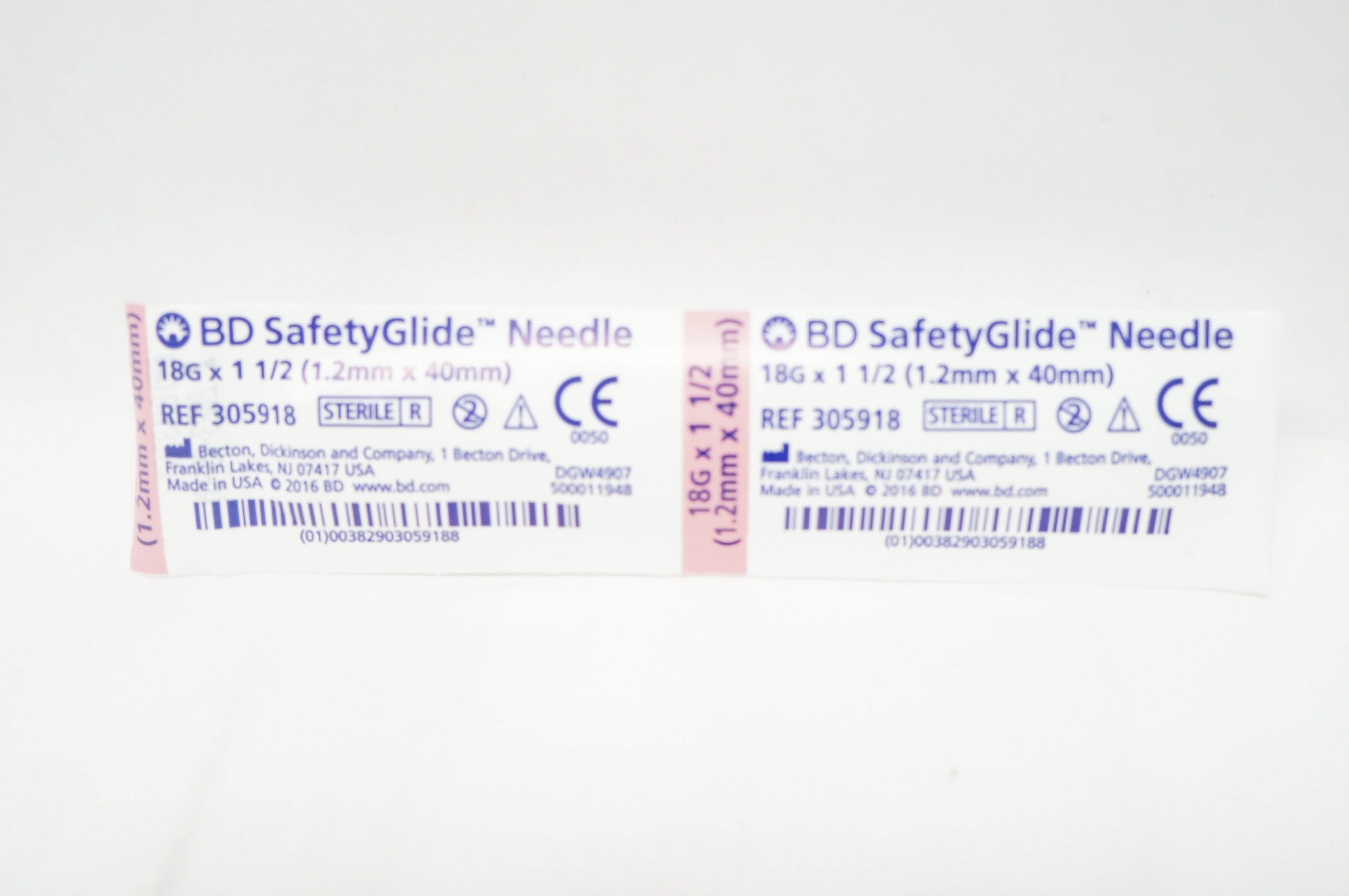BD 305918 SafetyGlide Ndle 18G x 1-1/2 inch