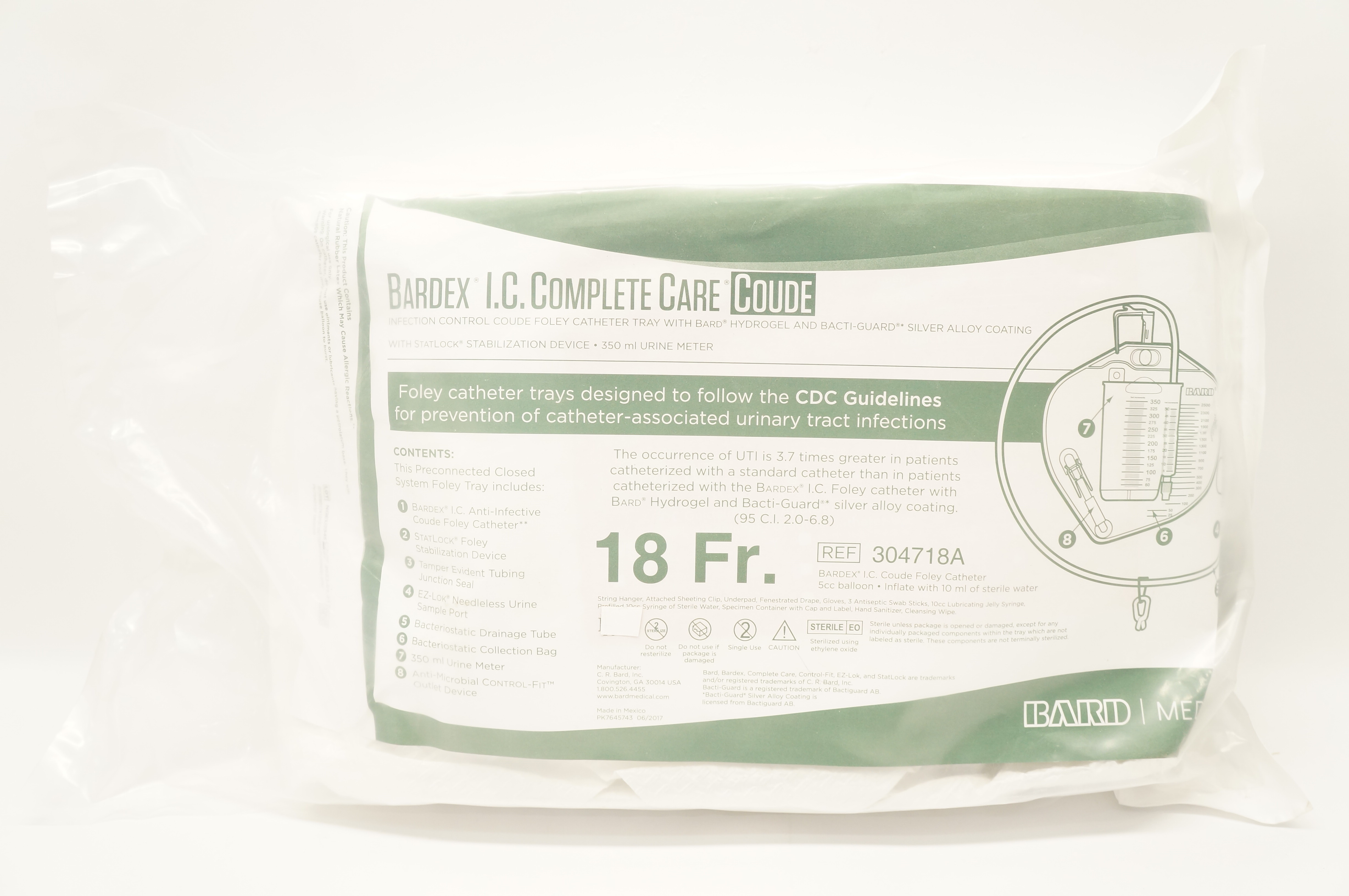Bard 304718A Bardex I.C. Complete Care Coude Infection Control Coude Foley Catheter Tray 18 Fr. Expiration Date: 2023-01-31