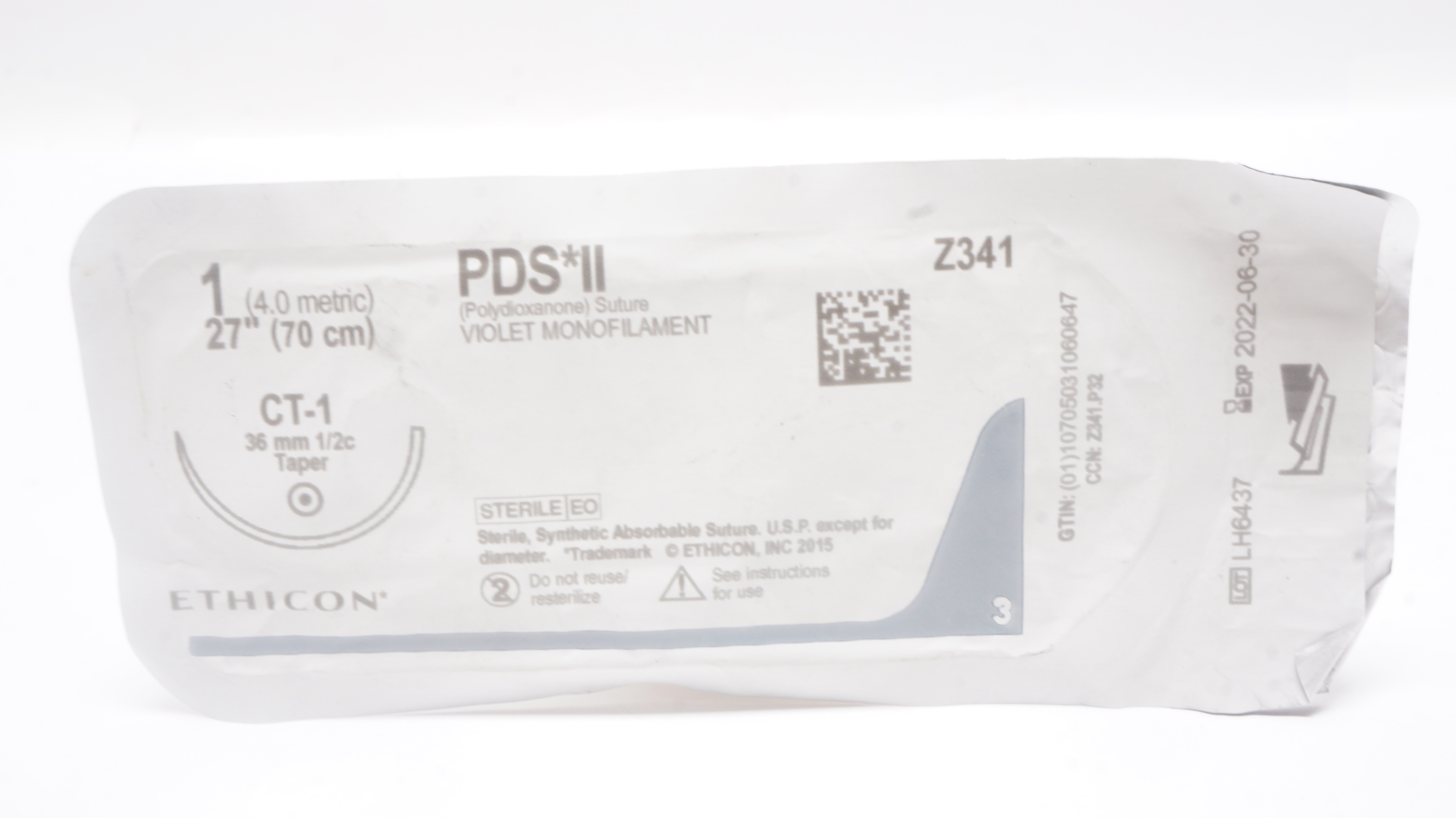 Ethicon Z341 1 PDS II, Violet Monofilament, CT-1 36mm 1/2c Taper, 27inch Item Past Expiration