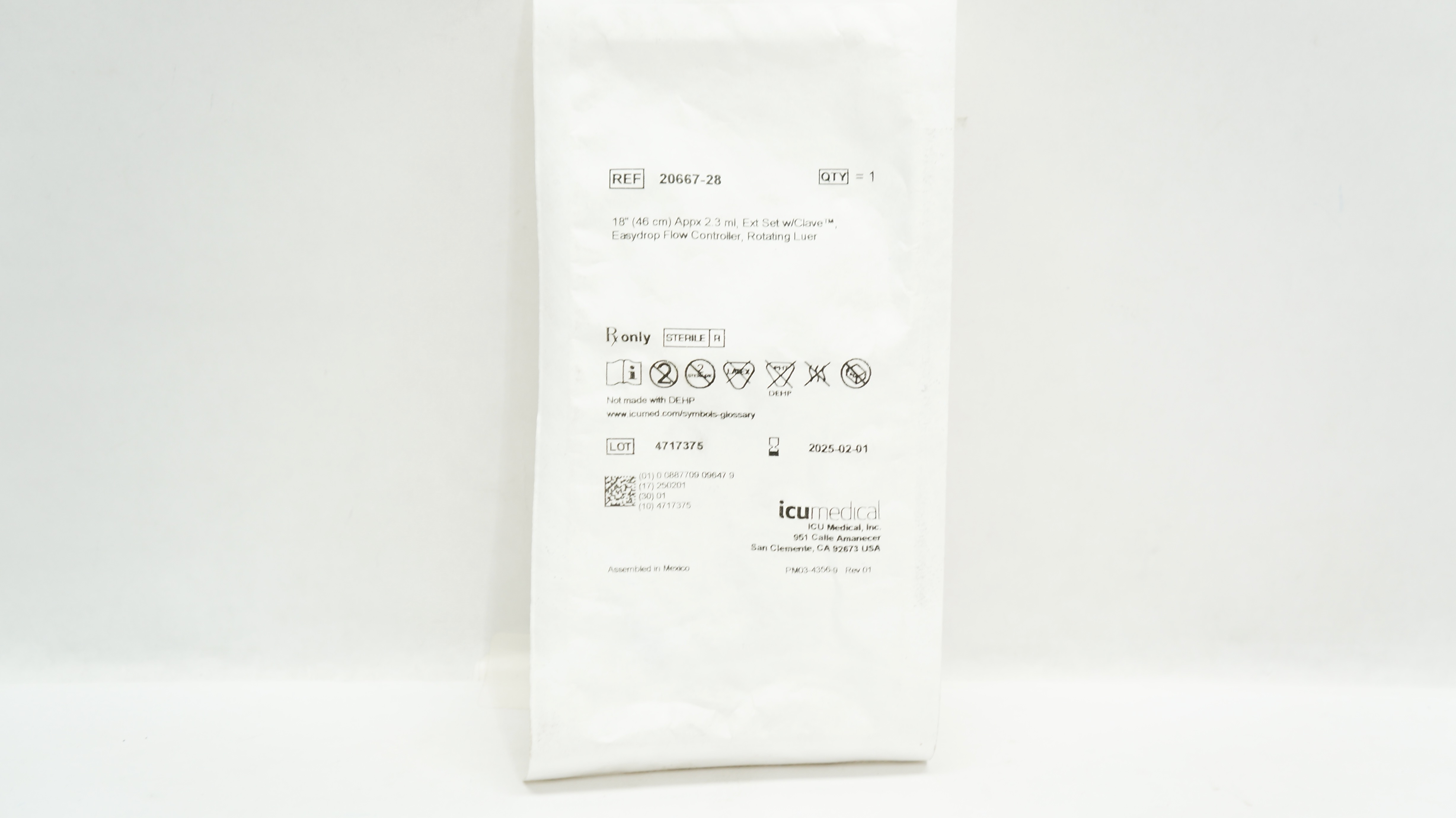 ICU Medical 20667-28 18inch Appx 2.3ml Extension Set w/Clave Easydrop Flow Controller, Rotating Luer Expiration Date 2025-02