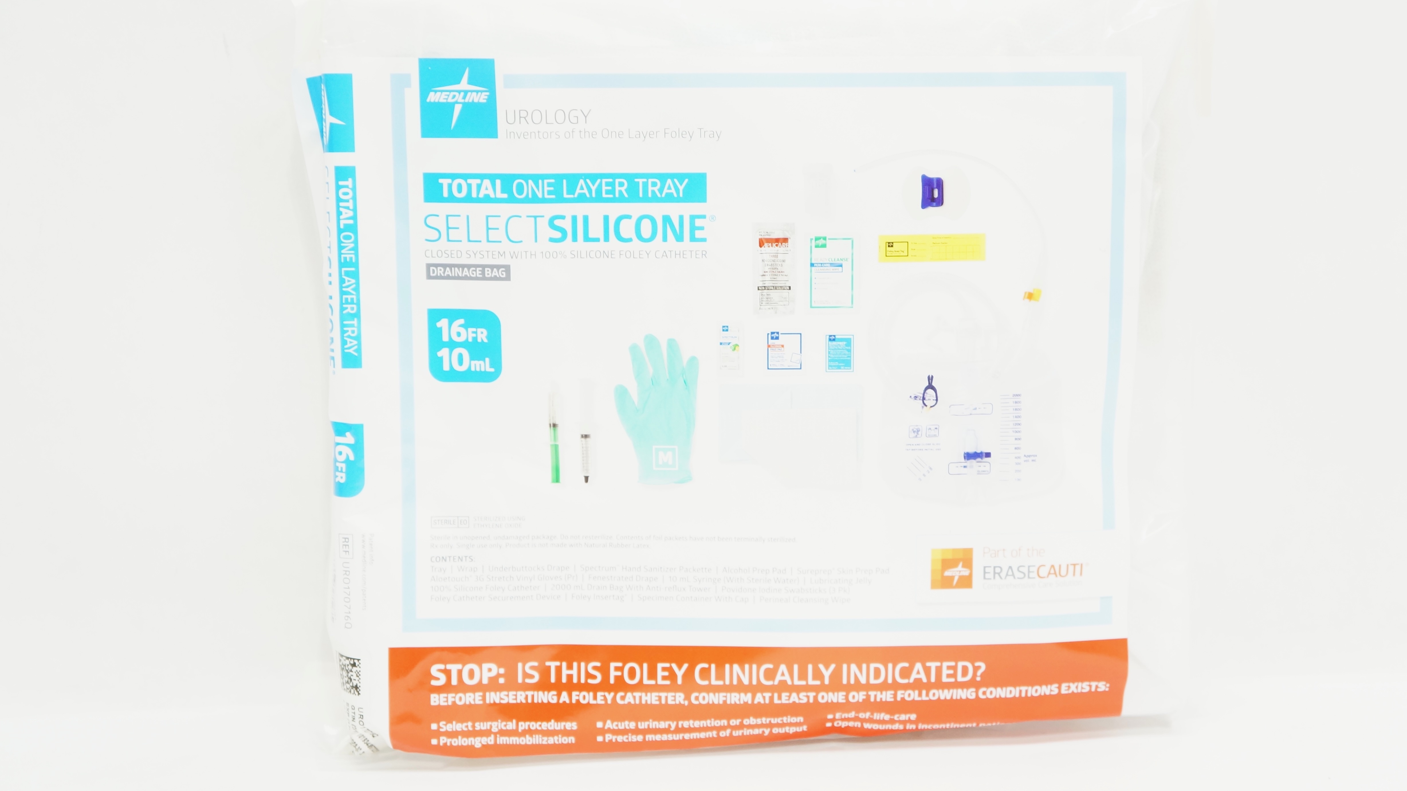 Medline UR0170716Q Urology Total One Layer Tray Closed System Silicone Foley Catheter, Drainage Bag with 100%16Ft x 10mL