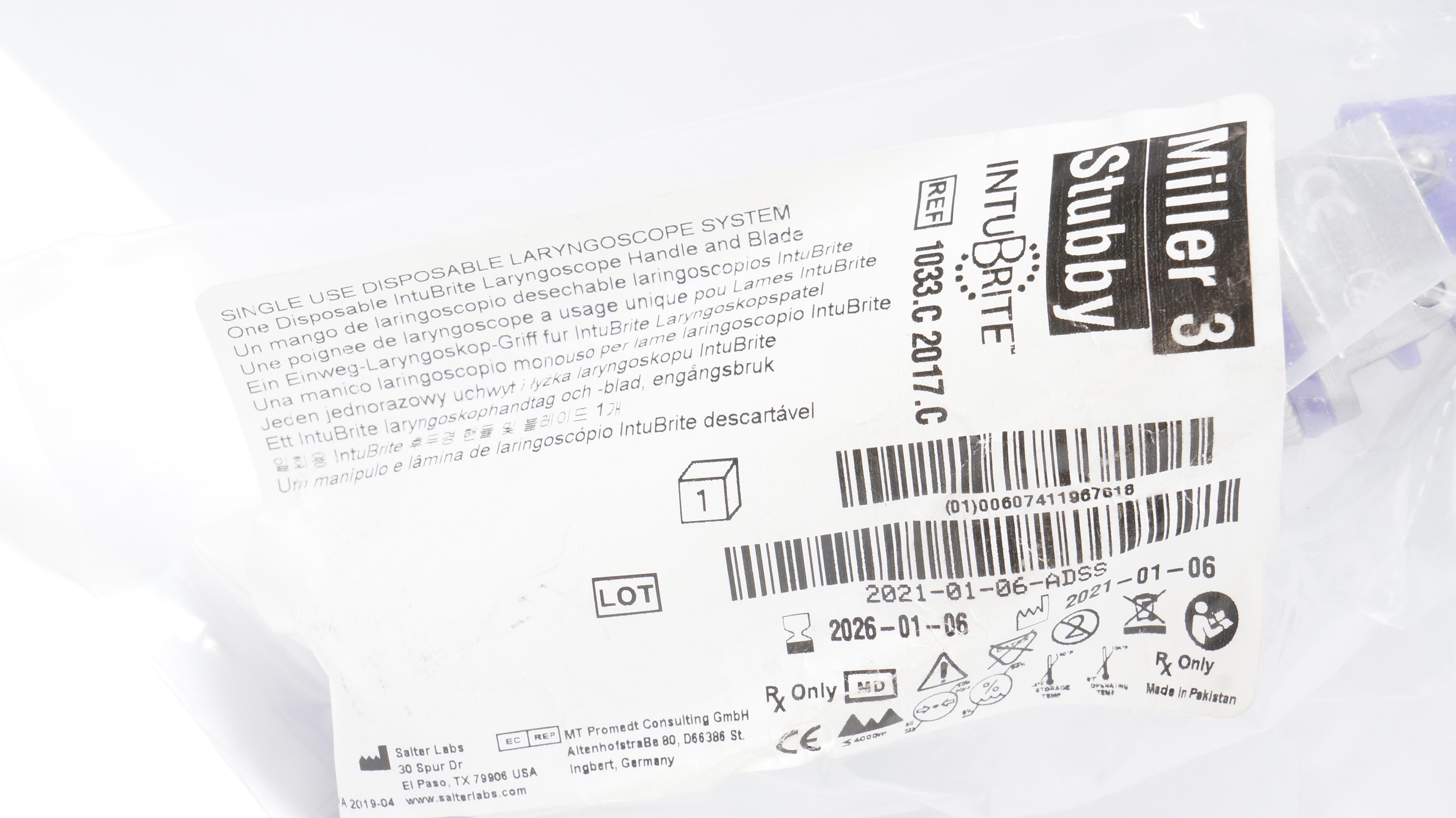 Salter Labs 1033.C 2017.C IntuBrite Disposable Laryngoscope System Mill3