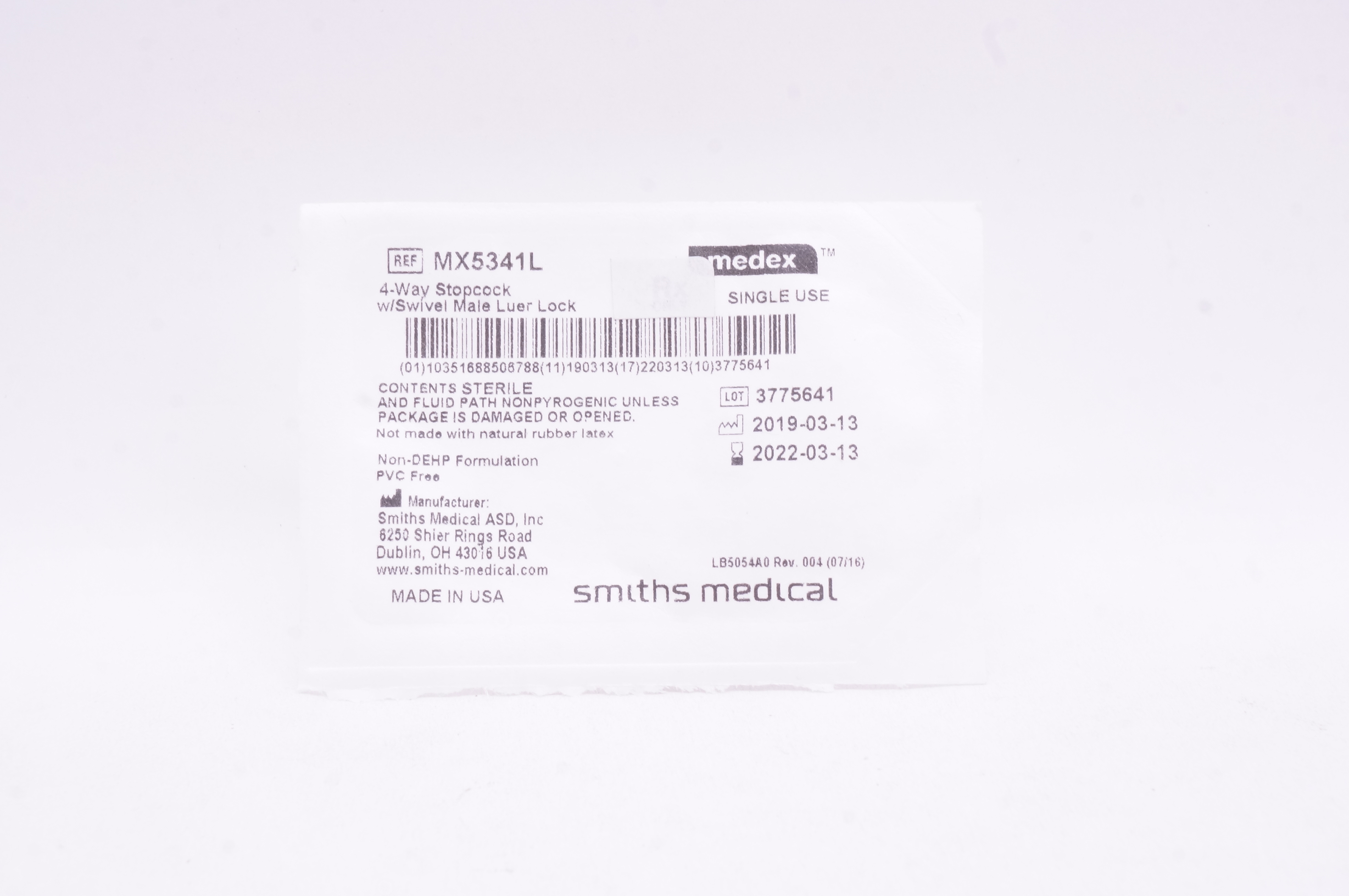You're reviewing:Smiths Medical MX5341L 4-Way Stopcock w/Swivel Male Luer Lock